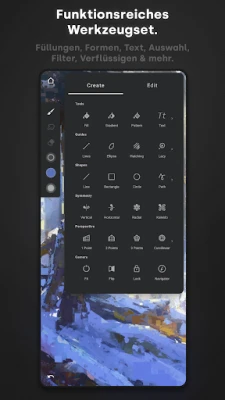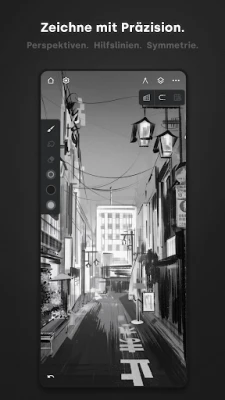 Von präzisen Skizzen bis hin zu komplexen digitalen Gemälden – Infinite Painter bietet ein umfassendes Arsenal an Werkzeugen, die jeden Schritt Ihres kreativen Prozesses unterstützen. Experimentieren Sie mit vier Symmetriearten, nutzen Sie Ebenen mit Photoshop-Mischmodi und erzielen Sie makellose Linien dank intelligenter Hilfslinien wie Linie, Ellipse oder Winkelmesser. Erschaffen Sie dynamische 3D-Stadtansichten mit fünf verschiedenen Perspektivhilfen oder definieren Sie Ihre Bereiche präzise mit Auswahl- und Zuschneidemasken. Die durchdachte Benutzeroberfläche von Infinite Painter ist intuitiv, organisiert und passt sich nahtlos Ihrem Workflow an, mit spezialisierten Bereichen für Malen, Klonen und Bearbeiten, sodass Ihre Lieblingswerkzeuge immer griffbereit sind.