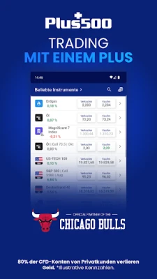 Für Anleger, die direkt in Unternehmen investieren möchten, bietet Plus500 Invest eine hervorragende Lösung. Erwerben und halten Sie Anteile an den beliebtesten Firmen führender Börsen oder beteiligen Sie sich an vielversprechenden IPOs, wobei die Verfügbarkeit der Aktien von Ihrer jeweiligen Gerichtsbarkeit abhängt. Diversifizieren Sie Ihr Portfolio mit Zugang zu einer breiten Palette von über 2.200 Anlagen und nutzen Sie kostenlose Marktdaten. Plus500 gewährleistet zudem einen kundenfreundlichen Service mit niedrigen Handelsprovisionen sowie gebührenfreien Ein- und Auszahlungen. Unser engagierter, rund um die Uhr verfügbarer Kundensupport steht Ihnen in 30 Sprachen zur Seite und unterstreicht das globale Engagement von Plus500, das sich auch in unseren prominenten Sportsponsorings wie den Chicago Bulls widerspiegelt.