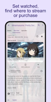 Behalten Sie den vollständigen Überblick über Ihr Seherlebnis: Mit SeriesGuide dokumentieren Sie präzise jede gesehene Episode und jeden Film, verfolgen Ihren Fortschritt und erhalten stets aktuelle Informationen über neue Staffeln. Nie wieder rätseln, wo ein bestimmter Titel verfügbar ist – SeriesGuide zeigt Ihnen umgehend, auf welchen Plattformen ein Stream angeboten oder ein Kauf möglich ist. Für eine nahtlose Erfahrung auf all Ihren Geräten ermöglicht Ihnen der optionale SeriesGuide Cloud-Dienst, Ihre Bibliothek sicher zu synchronisieren und von überall darauf zuzugreifen.
