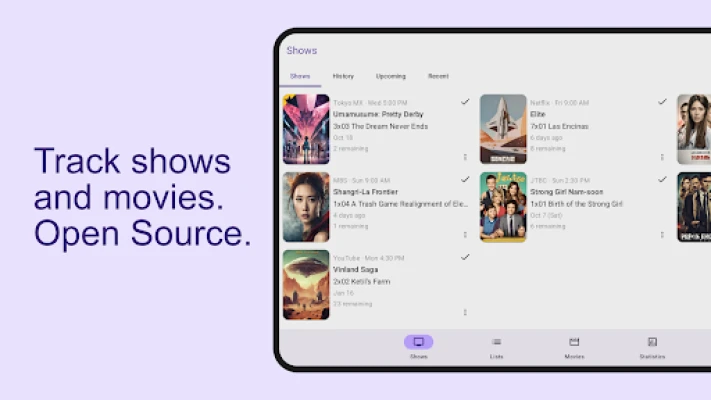 Mit SeriesGuide entdeckst du mühelos neue Serien und Filme. Behalte den Überblick über all deine gesehenen Episoden und Filme, verfolge deinen Fortschritt und plane deine nächste Binge-Session. Dein persönlicher Serien- und Filmguide, immer griffbereit.